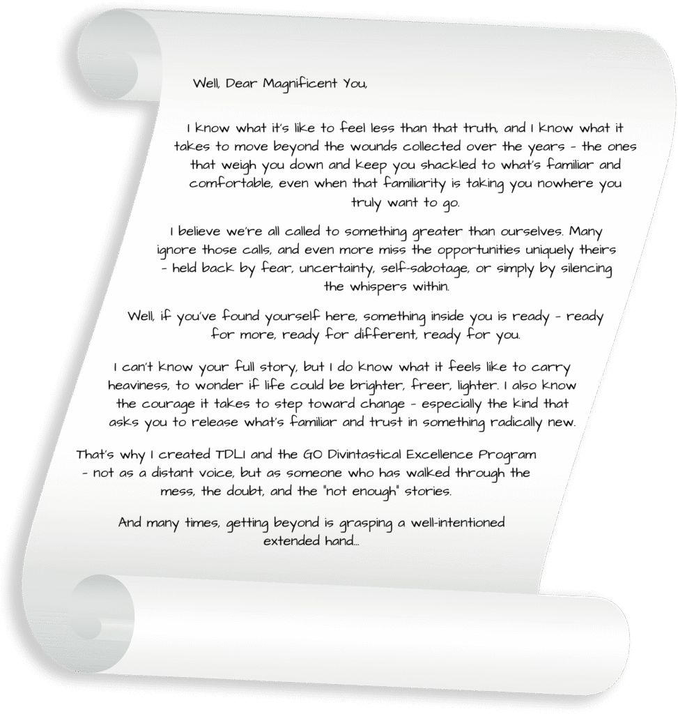 That choice became TDLI: an institute that embodies the Divintastical Living movement and delivers programs like GO Divintastical Excellence—helping transform heaviness into fuel and empowering people to step boldly into their own excellence.